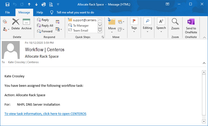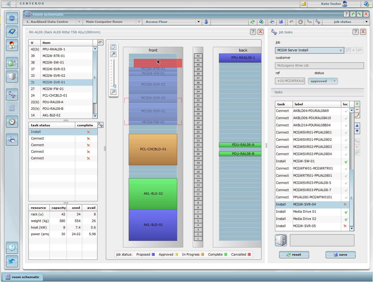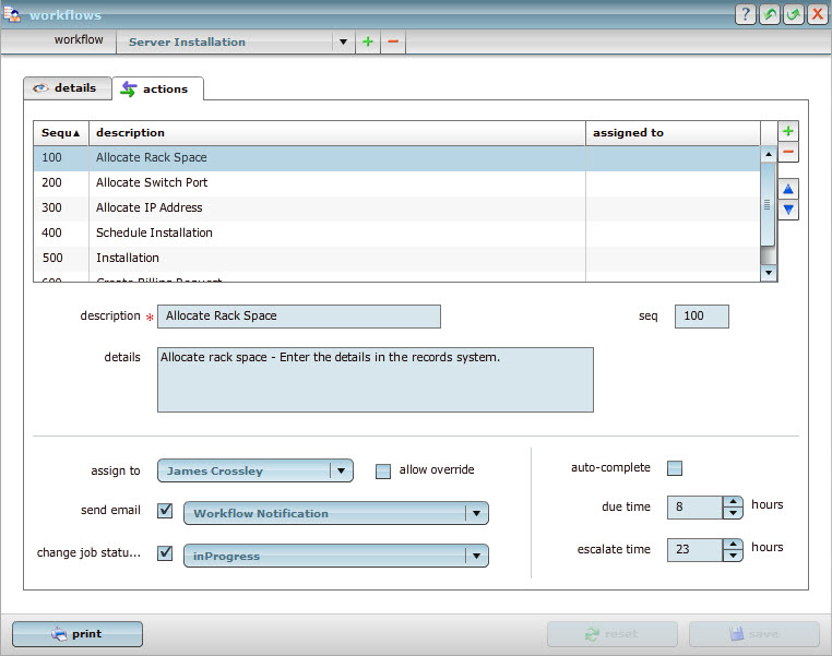 When the setup is complete the Job can be attached to a workflow. The workflow manages the stages that are required to commission the space, place the equipment in the rack, connect the power and network connections.